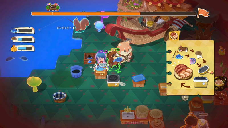 本作は、魚釣り、野菜や果物の栽培、料理、接客など、レストラン運営の全工程を体験できる協力クッキングアクションです。,br>
