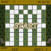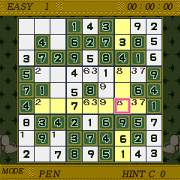 1から9までの数字を、縦横9列(合計81)のマスに埋めていく パズルゲームです。 3×3に区切られた9つのマスと、縦横の同じ列の中に数字が 重複しないようにマスを埋めていきます。 はじめに置いてある数字をヒントに分析し、すべてのマスを 埋めることができればクリアとなります。