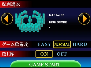 各配列で、ゲーム難易度(EASY/NORMAL/HARD)と、隠し牌のON/OFFが選択できます。