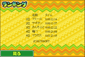 また、「ランキングイベント」をクリアすると、世界中のプレイヤーとクリアタイムを競うことができます。オプションでtwitter設定をすれば、結果をつぶやくことができます。(#shanghai_amigo)